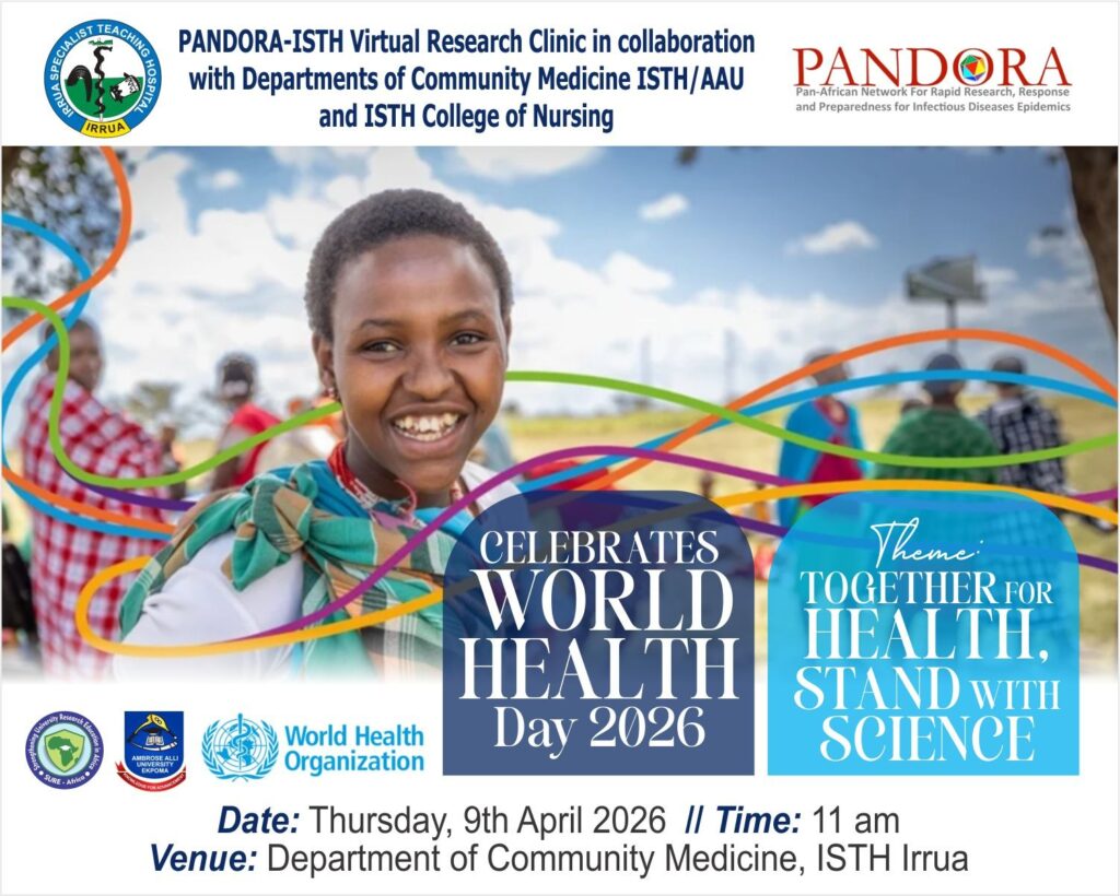 The PANDORA–ISTH Virtual Research Clinic, in collaboration with the Department of Community Medicine at Irrua Specialist Teaching Hospital, Ambrose Alli University, and the ISTH College of Nursing, commemorated **World Health Day 2026** with the theme “Together for Health, Stand with Science.” The event brought together healthcare professionals, researchers, and students to highlight the importance of science-driven solutions in improving public health and strengthening preparedness for infectious disease outbreaks. Through discussions and collaborative engagement, participants reaffirmed their commitment to advancing research, promoting evidence-based healthcare, and improving community health outcomes.